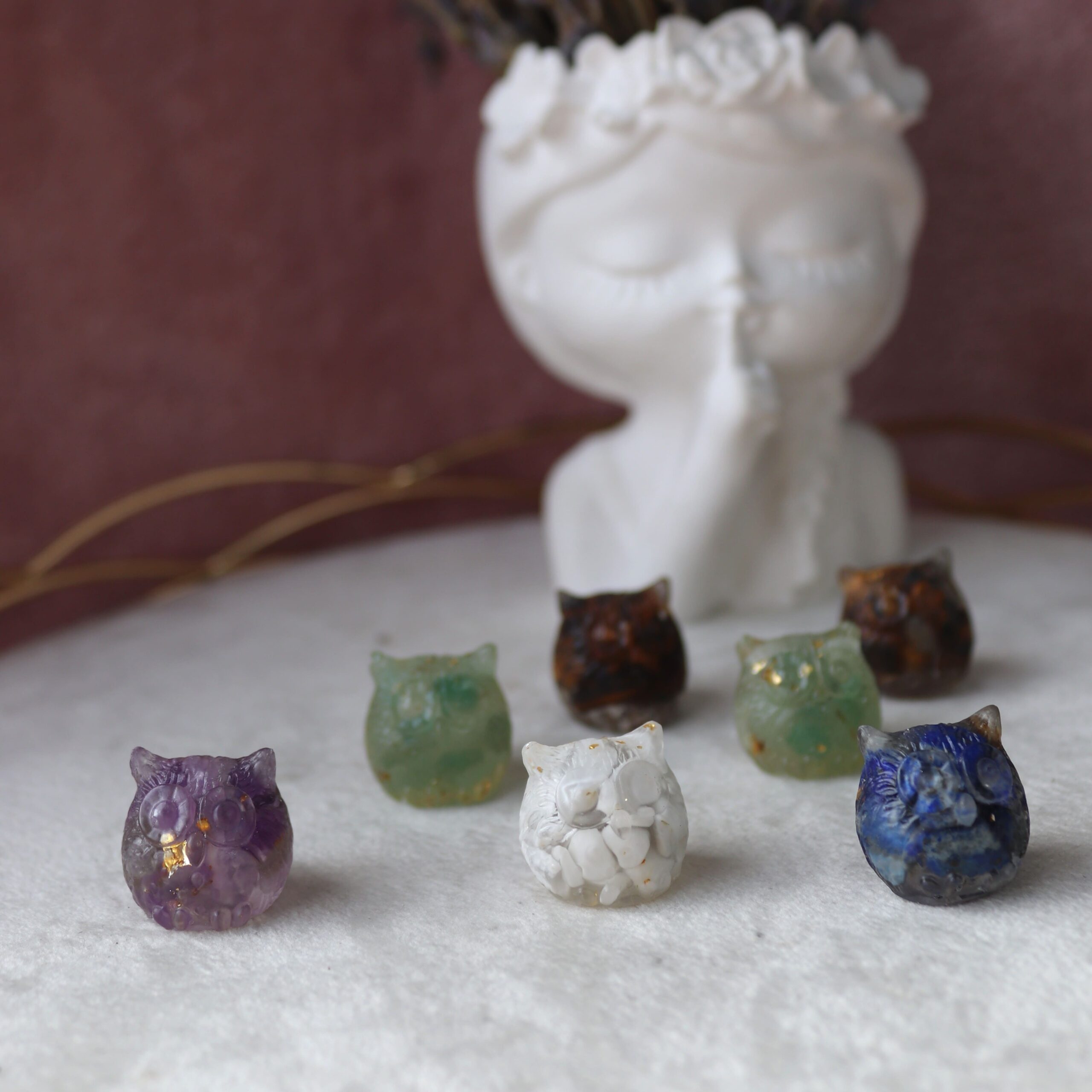 Os Mini Mochos de Resina com Cristais são pequenos amuletos cheios de significado e luz. O mocho simboliza sabedoria, intuição e proteção espiritual, enquanto os cristais no seu interior amplificam as boas vibrações e harmonizam o ambiente. Cada peça é única, feita com resina transparente e cristais naturais que irradiam energia positiva.